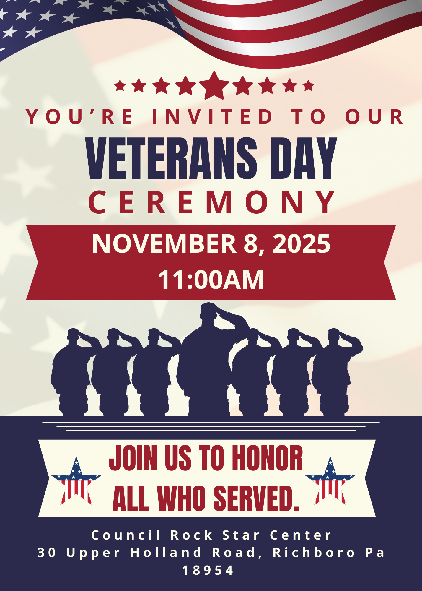 Home Resources News YOU'RE INVITED! VETERANS DAY CEREMONY-NOVEMBER 8TH Oct 23, 2025 Events General News Events Holidays Public Notice Trash & Recycling Information Special Event Videos All Articles Recent Articles Temporary Closure – Crossroads Plaza Entrance at 2nd Street Pike YOU'RE INVITED! VETERANS DAY CEREMONY-NOVEMBER 8TH Public Notice-Zoning Hearing Board-November 10, 2025 Resources Alerts Calendar Documents, Forms & Permits Feedback Maps News Site Map Northampton Township Administration Building 55 Township Road Richboro, PA 18954 Phone: (215) 357-6800 Fax: (215) 357-1251 info@nhtwp.org Hours Mon-Fri: 8:30 am - 4:30 pm View Contacts & Directory