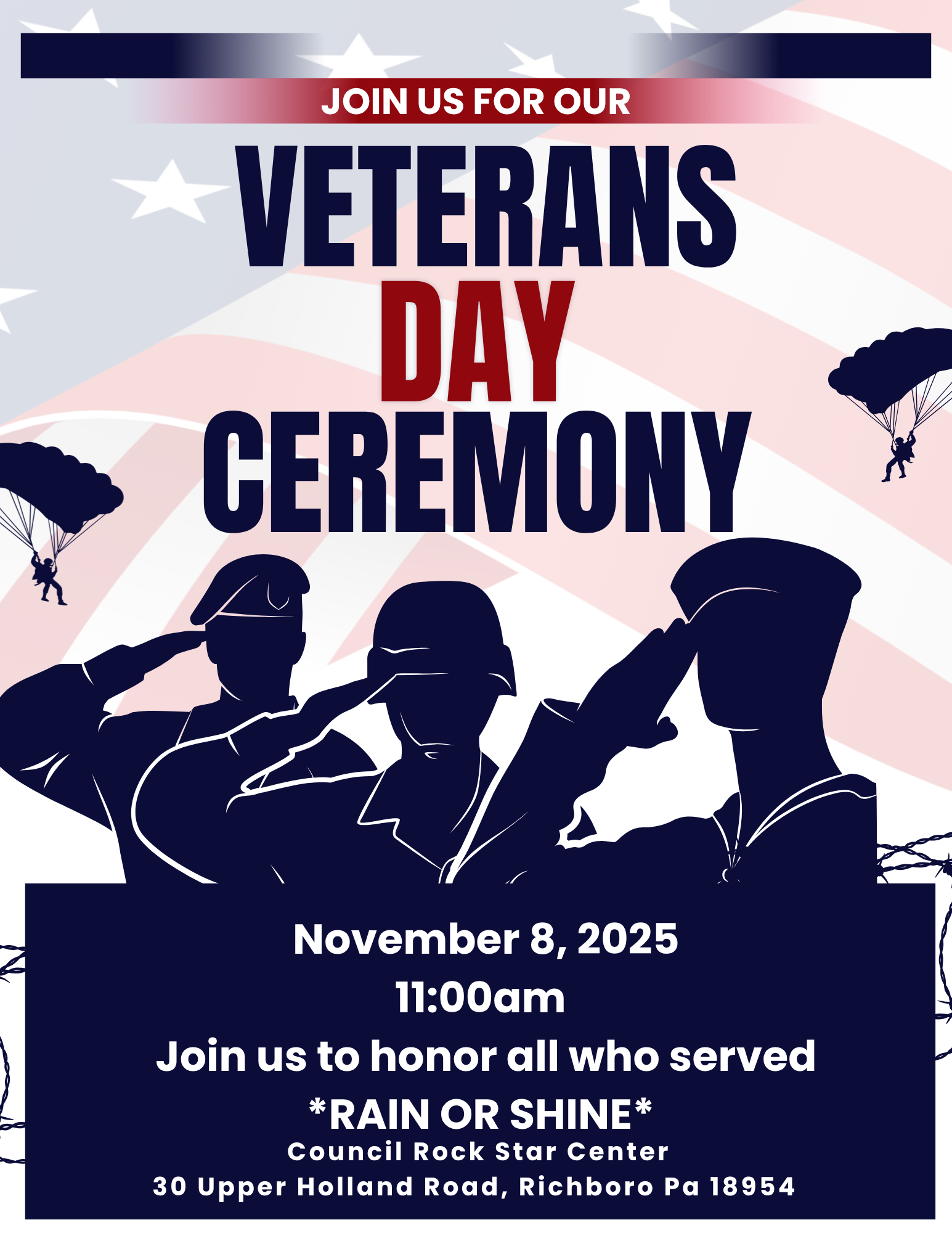 Home Resources News Join us on Saturday, November 8th for our Veteran's Day Ceremony Nov 3, 2025 Events General News Events Holidays Public Notice Trash & Recycling Information Special Event Videos All Articles Recent Articles Join us on Saturday, November 8th for our Veteran's Day Ceremony Temporary Closure – Crossroads Plaza Entrance at 2nd Street Pike YOU'RE INVITED! VETERANS DAY CEREMONY-NOVEMBER 8TH Resources Alerts Calendar Documents, Forms & Permits Feedback Maps News Site Map Northampton Township Administration Building 55 Township Road Richboro, PA 18954 Phone: (215) 357-6800 Fax: (215) 357-1251 info@nhtwp.org Hours Mon-Fri: 8:30 am - 4:30 pm View Contacts & Directory